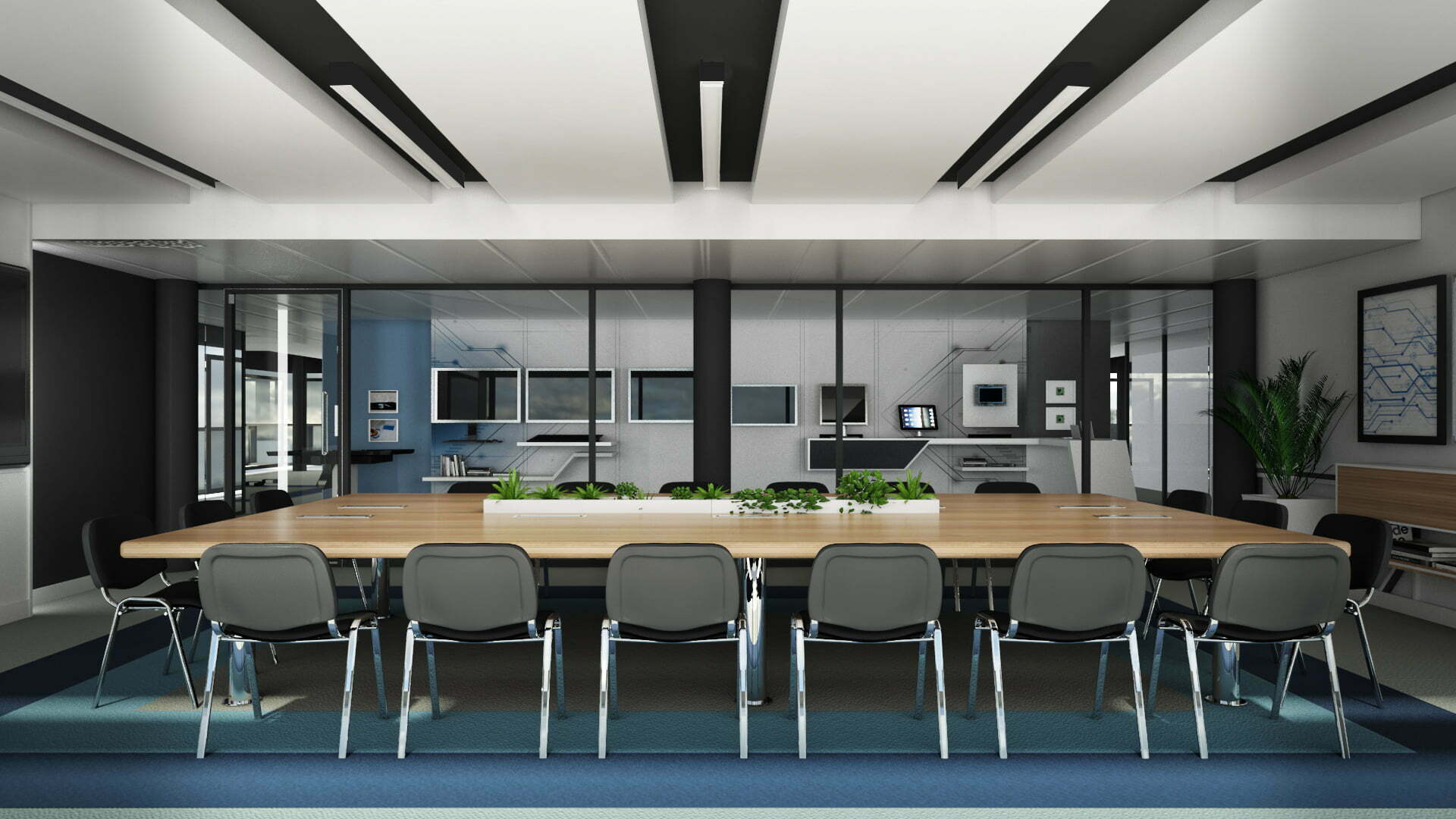 We decided to design it in a style that relates to the client’s expertise area. A large number of furniture elements have curved surfaces that resemble microchips. These are continuous fluid forms that go over each other in a futuristic style.