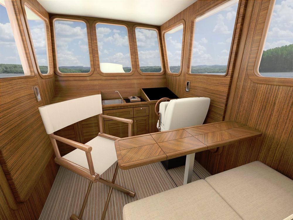 Snežnik is a river boat which can accommodate four guests for longer sailing routes through Europe’s busy rivers and canals. That means guest can check out every interesting spot along the way and still spend some quality time on the boat. Snežnik has a salon, a wheelhouse, a sleeping cabin and a bathroom. The wheelhouse is probably the most interesting room on the boat since it has a small kitchen desk and a tiny secret door which lead to the sleeping area.