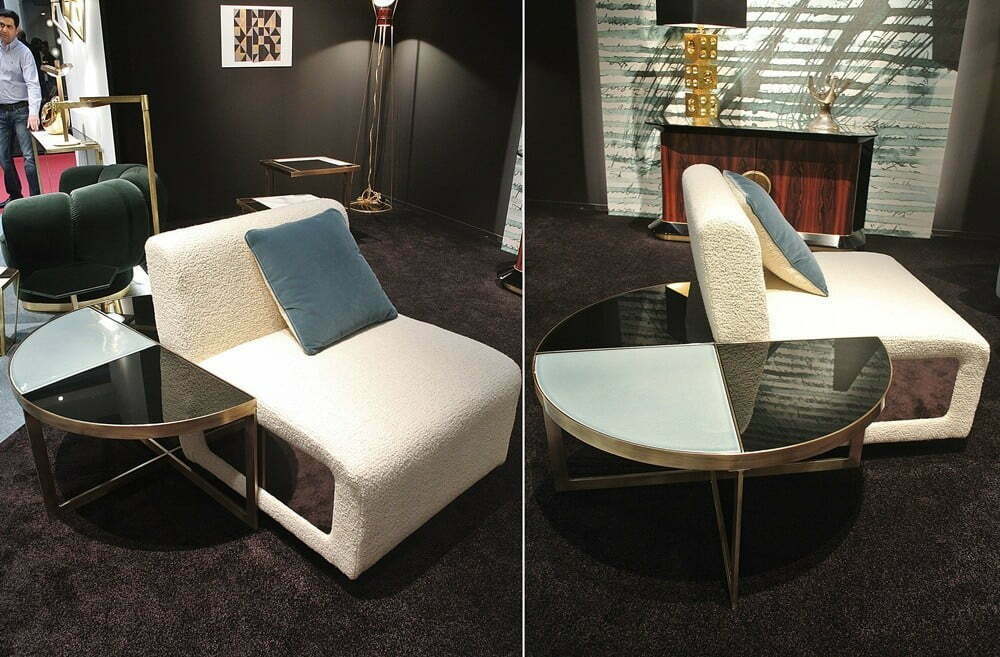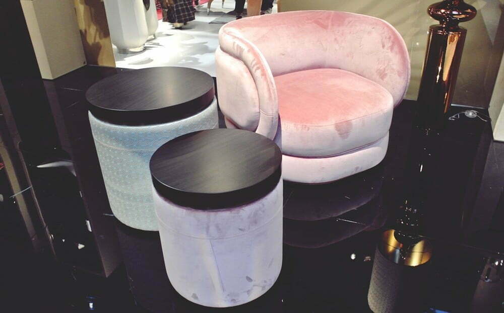 Coffee tables that also serve as mini storage units were a marvelous surprise. Some models were covered with a cloth, which was such a treat for the devoted texture addicts like us.