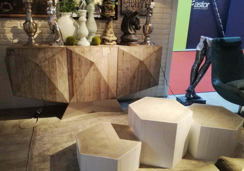 There is no doubt that the wood is the main inspiration at the Salon. These trunks are carved into the interesting geometric shapes.