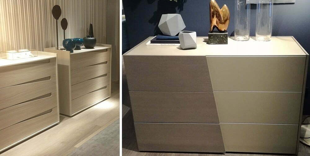 This year, a design of the additional elements is even more interesting than usual. This applies primarily to the chests of drawers and bedside tables both with rounded and sharp corners.