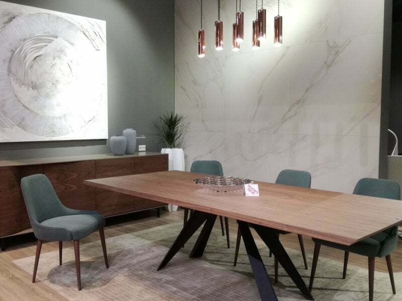 Dining tables with legs of an oblique angle and chamfers were a hit (as seen in the featured photo, as well).