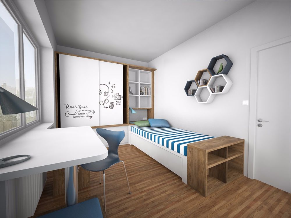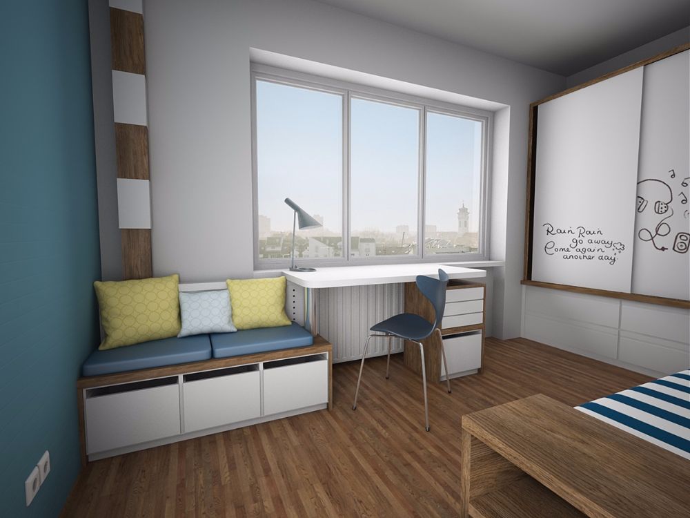 Za početak, predstavljamo jednu malu dečačku sobu koju je trebalo dizajnirati tako da u nju stane sve ono što bi inače krasilo sobu jednog dečaka, ali da ostane dovoljno prostora za njegove stvari, posteljinu i radni prostor. Budući da su dimenzije sobe bile zaista male, morali smo dobro da razmislimo koje elemente možemo da preskočimo a koje da inkorporiramo u naš dizajn.