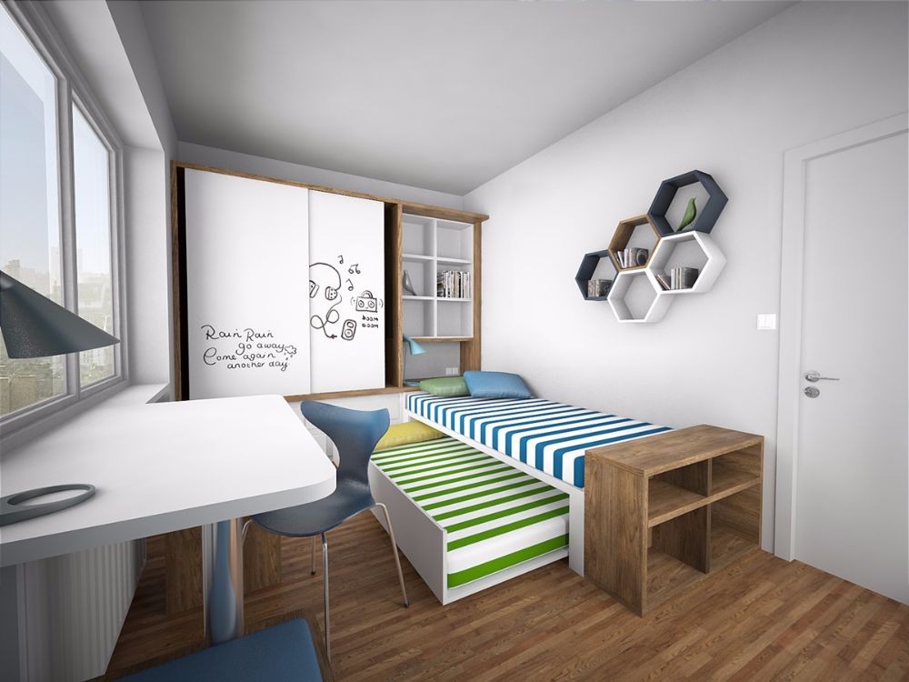 Modularni nameštaj nametnuo se kao logično rešenje, a naši klijenti obratili su se pouzdanim stolarima koji su naše ideje pretvorili u stvarnost. Neka od tih rešenja su: krevet sa opcijom izvlačenja dodatnog ležaja, vrata ormara koja služe kao tabla za pisanje, klupa koja služi kao sanduk, dok je njen naslon ujedno i štitnik za radijator.
