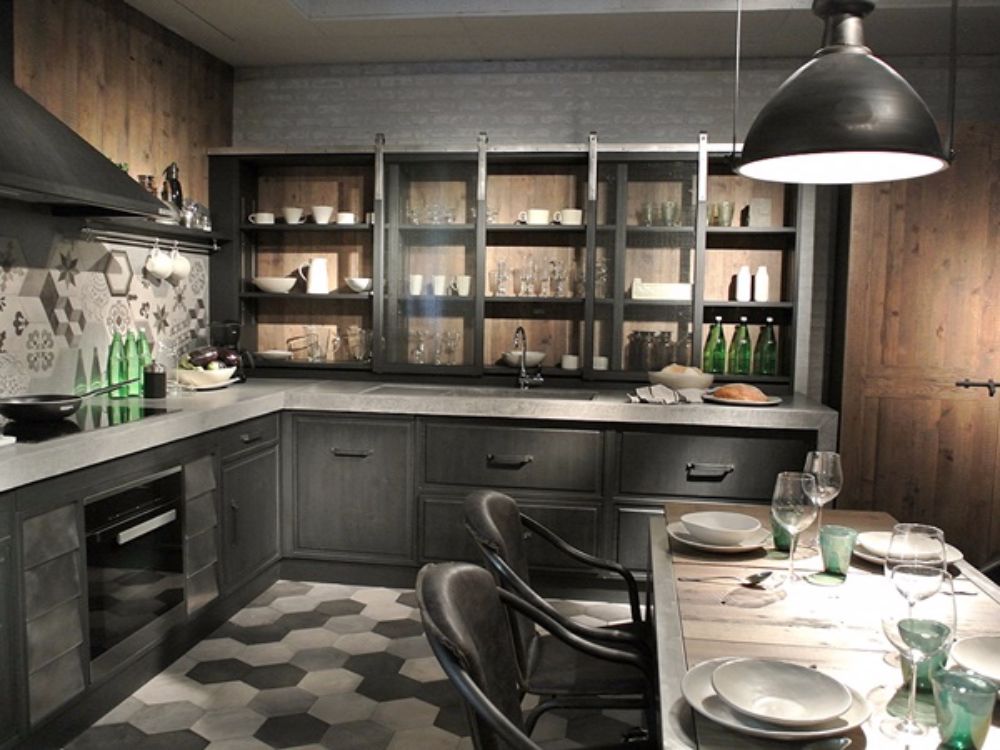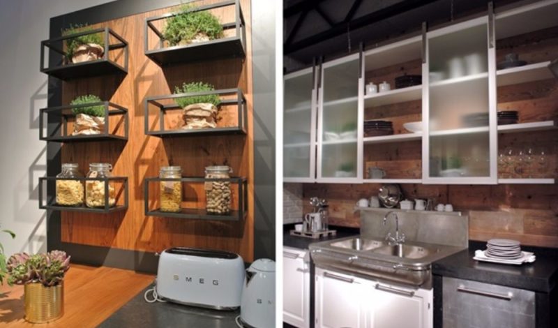 Elegantni kuhinjski elementi napravljeni od crnog metala su možda najveći hit ove godine. Na slici gore vidite kako se otvoreni metalni elementi odlično slažu uz drvene paravane.