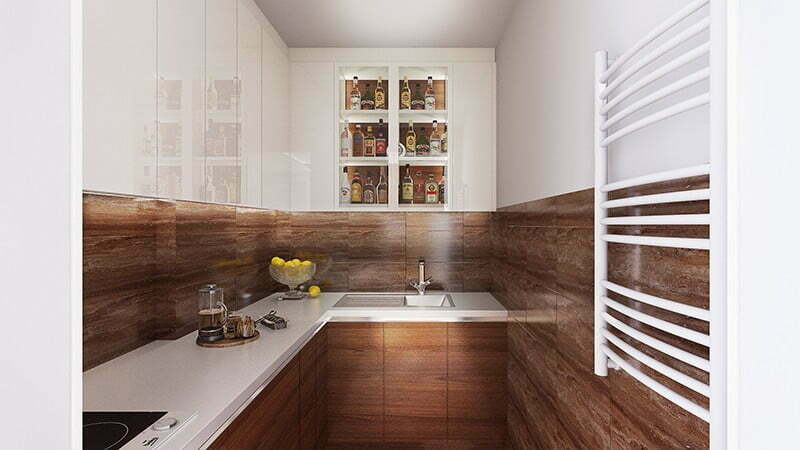 Kuhinja, u kombinaciji drveta i svetlog medijapana stilski se nadovezuje se na prostor čekaonice. Opremljena sa dve ringle, sudoperom i ugradnim frižiderom pruža mesto predaha timu u toku radnog vremena.