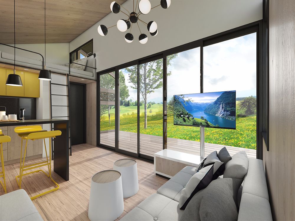 Za nas je prelazak sa vode na tle bio prirodan, posebno nakon dizajniranja katamarana apartmana. Benefiti stambenih objekata male površine i nas su privukli, pa smo kreirali rasklopivu malu kuću za uživanje u svakom prirodnom ambijentu.