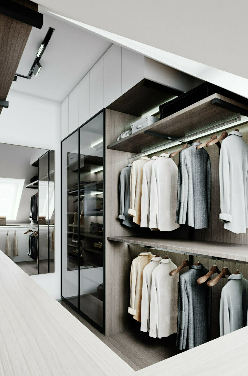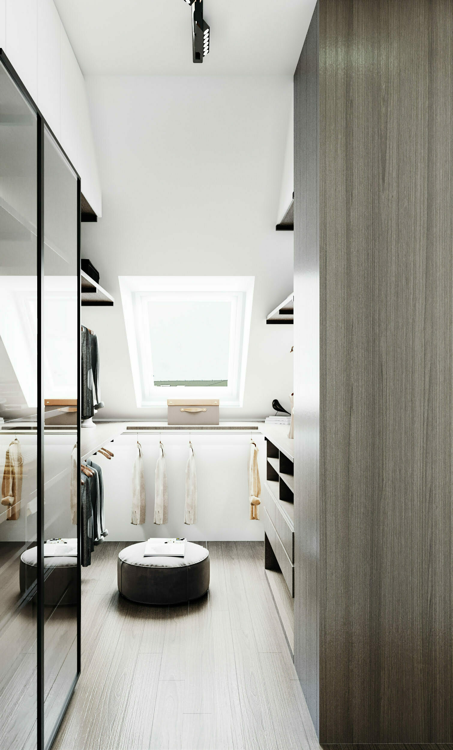 Za prijatnu svakodnevnicu važno je imati uredan prostor. Zato smo uključili garderobere kao zasebne prostorije u kojima preglednosti doprinosi dosta svetlosti koja dopire kroz krovni prozor.