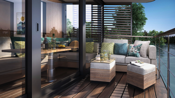 Additionally, these apartments significantly improve the use of tourism potential. The huge terraces offer a fantastic view of the lake and nearby greenery. The passenger can change the scene anytime – every apartment has an engine and a navigation area. What does that mean? You can order breakfast on one side of the lake and spend the evening on another one.